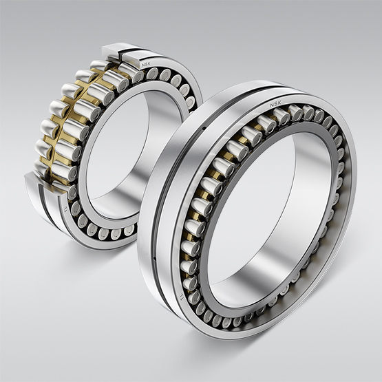 Os rolamentos autocompensadores de rolos estão disponíveis nos tipos EA, C, CD e CA, projetados para suportar alta capacidade de carga. Os tipos EA, C e CD são equipados com gaiolas de aço prensado, enquanto o tipo CA utiliza gaiolas de latão usinado. Todos os rolamentos EA são da série NSKHPS, um modelo de alto desempenho.