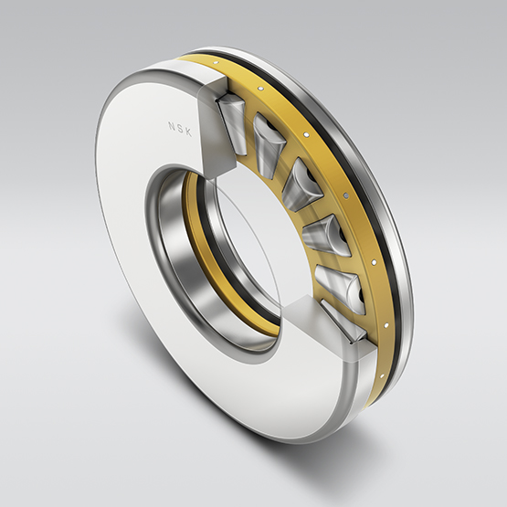 Disponíveis com rolos cilíndricos, cônicos e esféricos, os rolamentos de rolos axiais são projetados para suportar exclusivamente cargas axiais. Os rolamentos de rolos axiais da NSK são ideais para cargas pesadas e oferecem alta rigidez axial. Gaiolas de latão usinado são usadas como padrão.