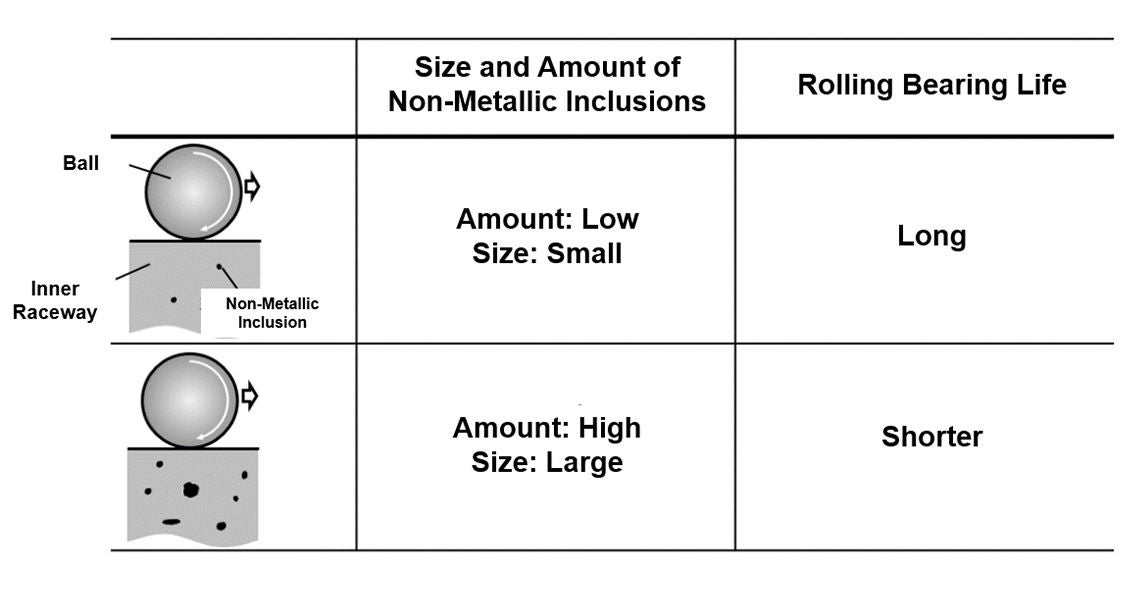 The ISO bearing life calculation formula emphasizes the effect of lubrication conditions. Of course, lubrication greatly affects bearing life, but lubrication technology is much better today than it was in 1962. Our research has demonstrated that under well-lubricated conditions, the composition and quality (the amount of impurities) of the bearing steel is a more accurate indicator in predicting how long a bearing will last in its application.