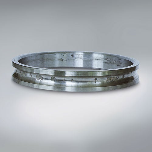 Zu Abblätterungen kommt es, wenn kleine Teile des Wälzlagerwerkstoffs aufgrund von Wälzermüdung von der Oberfläche der Laufbahn oder der Wälzkörper absplittern und auf diese Weise Bereiche mit einer rauen Struktur entstehen. |