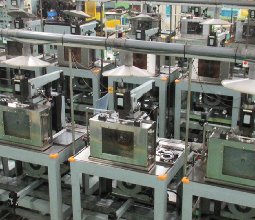 4コアテクノロジーによる環境貢献、安全・安心を向上させるためには、それを形にする必要があります。また、高品質な製品を安定して生産することが必要です。NSKは、設備の知能化やIoT活用、生産システム全体の最適化に取り組み、省スペース、省エネルギー、省人化を高レベルで行うスマートファクトリー化を目指しています。