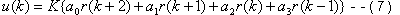(7)式より、閉ループ系への入力値を作成するためには、2サンプリング先の指令情報が必要となることがわかる。ここで、K、a0~a3は、モータの負荷慣性モーメントや各制御ループのゲイン及び定数で決定される値である。一般には、このような特性は非因果的であるため、実現することはできない。しかし、位置指令パルス発生機能を有する場合は、ドライブユニット内部で事前に指令情報を得ることができるため実現が可能となる。
